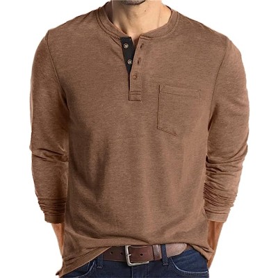Mens Fashion Henley Shirts Long Sleeve Button Cotton T-Shirt with Pocket
