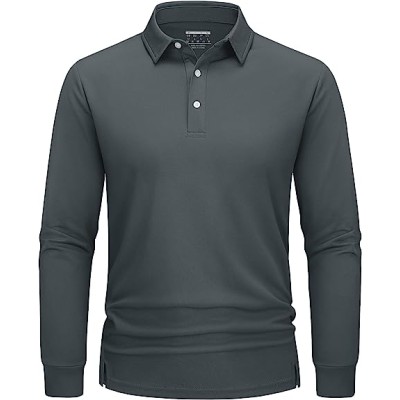 Men's Golf Polo Shirts Quick Dry Moisture Wicking Lightweight Casual Long Sleeve Shirt