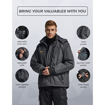 Men's Mountain Waterproof Ski Jacket Windproof Rain Jacket Winter Warm Hooded Coat