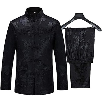 Men Hanfu Chinese Traditional Clothes Kung Fu Shirt Uniform Long Sleeved Coat Tops and Pants