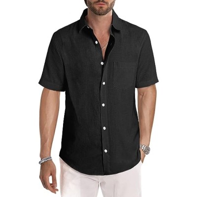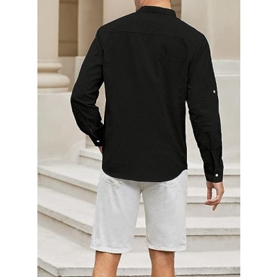 Cotton Linen Shirts for Men Casual Shirts Lightweight Long Sleeve Henley Beach Shirts Hawaiian T Shirts for Men