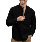 DESIGN: Men's henley neck shirts, casual mens cotton linen texture shirt with four buttons, stand collar, simple style, solid color, slim fit, long sleeve(Roll-up), button-down closure, rounded hem, featured button detail.